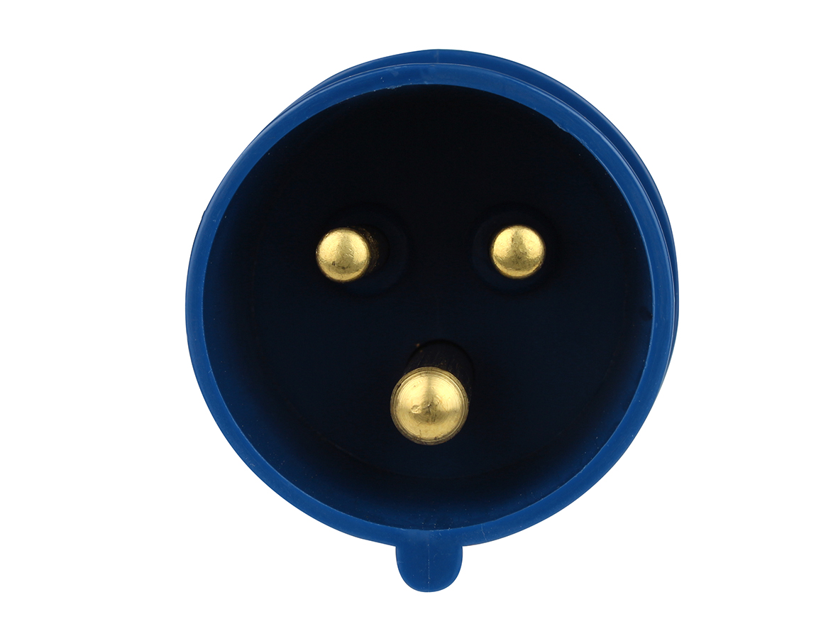 Prise mâle CEE 3 pôles, 230 Volt et 16 ampères.